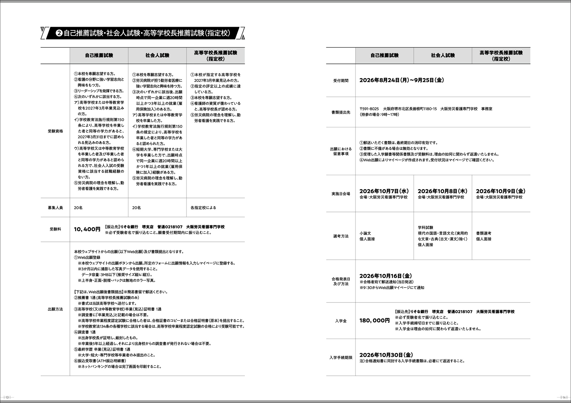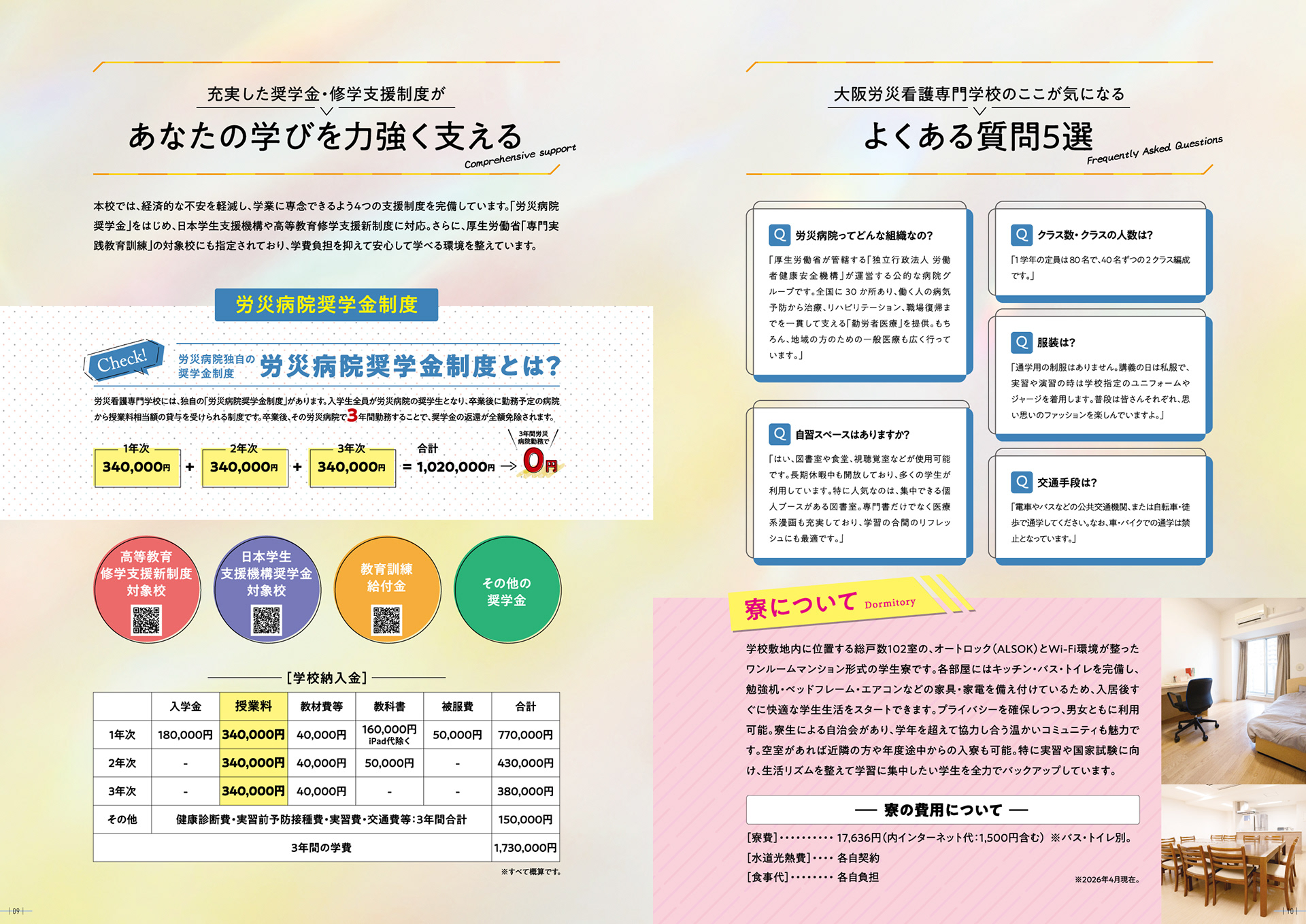 大阪労災看護専門学校の学校案内パンフレットでは、全体コンセプト「厳しい環境で未来を描く」を軸に表現設計を行いました。