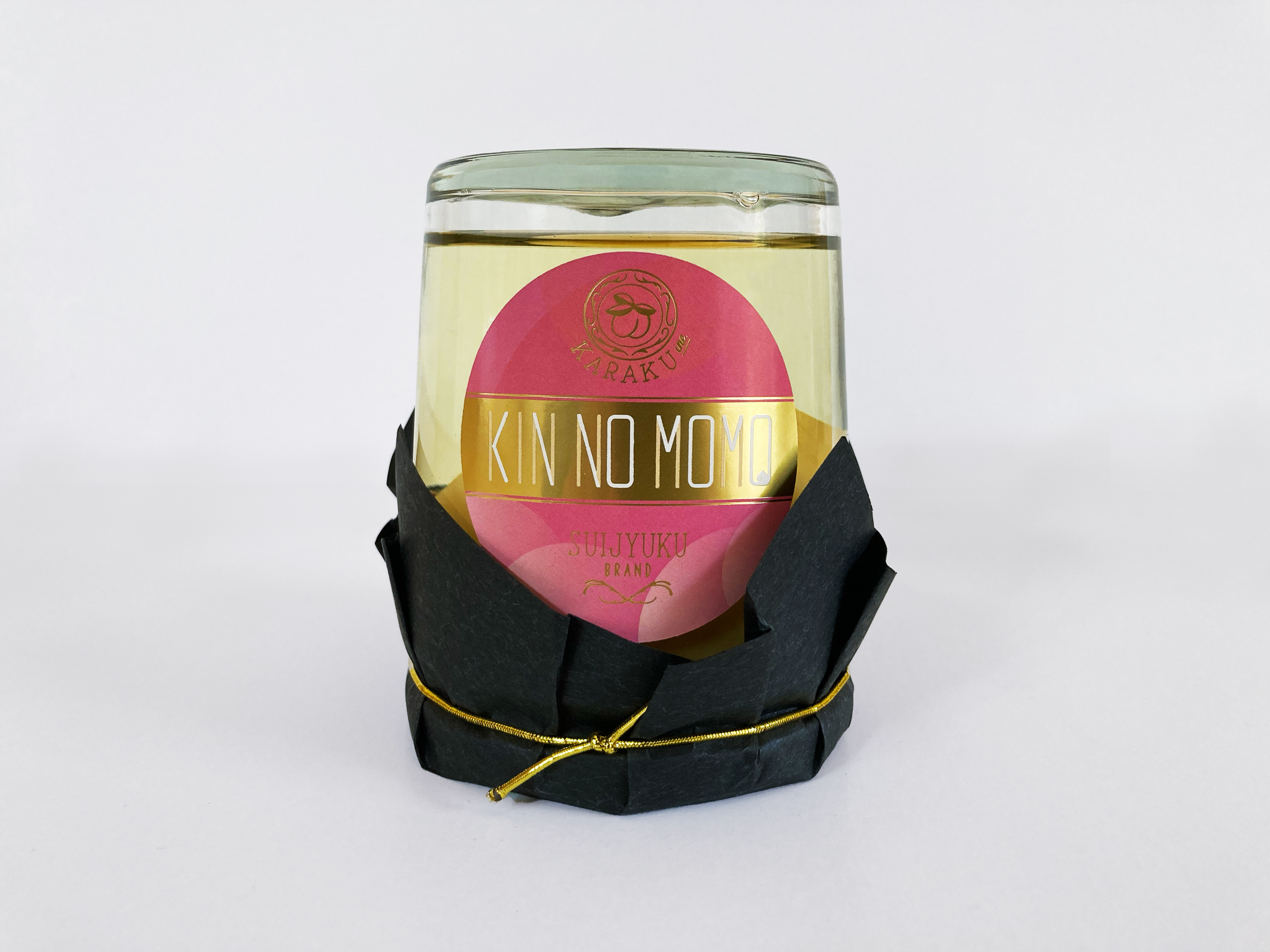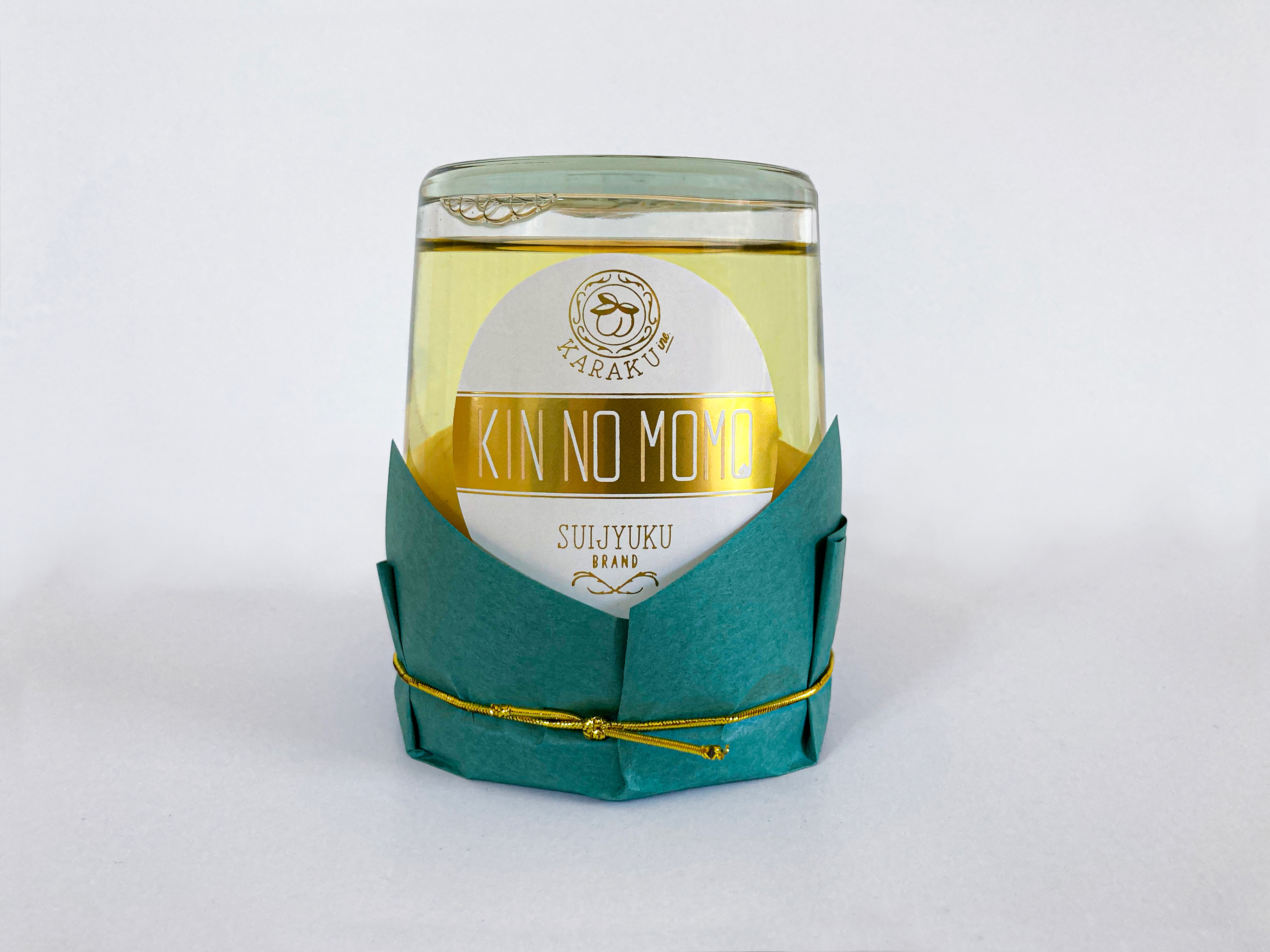 ターゲット高級志向の方に向けた商品で過度な装飾などは施さずシンプルなデザイン構成し、品質の良さを感じるデザインに。商品タイトルのKIN NO MOMOの部分とロゴを金箔で表現し、インパクトのある見せ方にして店頭に並んだ際に目を引くことを意識しています。今回は2種のデザインでクラシカルなホワイトver.と桃感を強めたピンクver.の2種制作。セット販売などを考慮しデザイン展開しました。